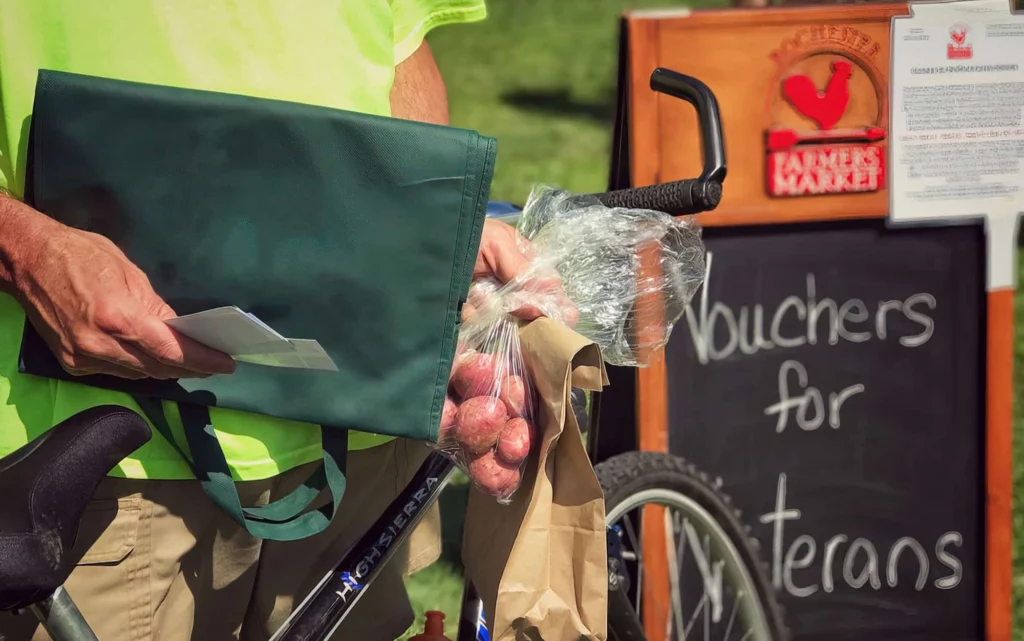 Vouchers for Veterans attends and distributes vouchers to Veterans at participating farmers markets across New Hampshire and Maine.